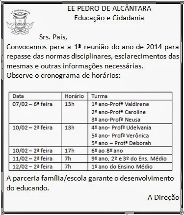 1ª reunião de pais